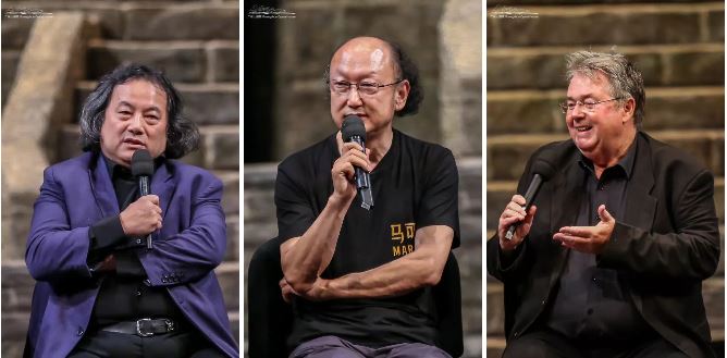 隨后,在多媒體設計盧克·霍爾斯LukeHalls的邀請下,部分嘉賓登上轉臺,感受表演現場的震撼,體會演員的不易。服裝設計艾瑪·瑞歐特EmmaRyott分別介紹了傳云、忽必烈、文天祥、馬可·波羅等角色的服飾,精巧設計和匠心獨運引發現場記者贊嘆連連。
