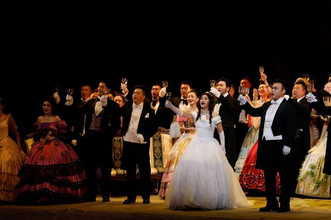 9月17日晚,深圳濱海演藝中心正式啟幕,3部著名歌劇也將在此接連登臺為市民獻上藝術盛宴。圖為當晚中央歌劇院帶來的《茶花女》。
